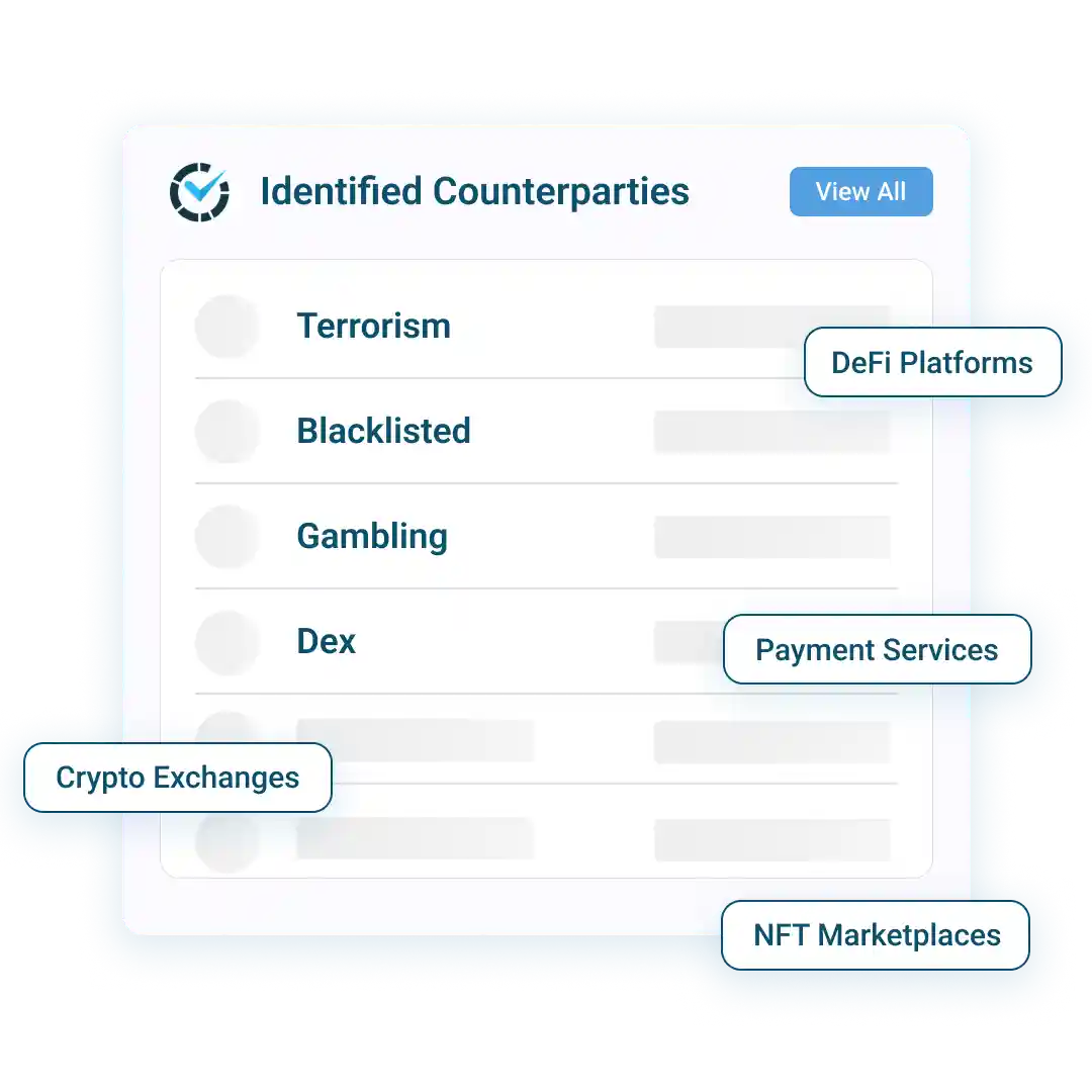 Identify and contextualize known counterparties interacting with your services.